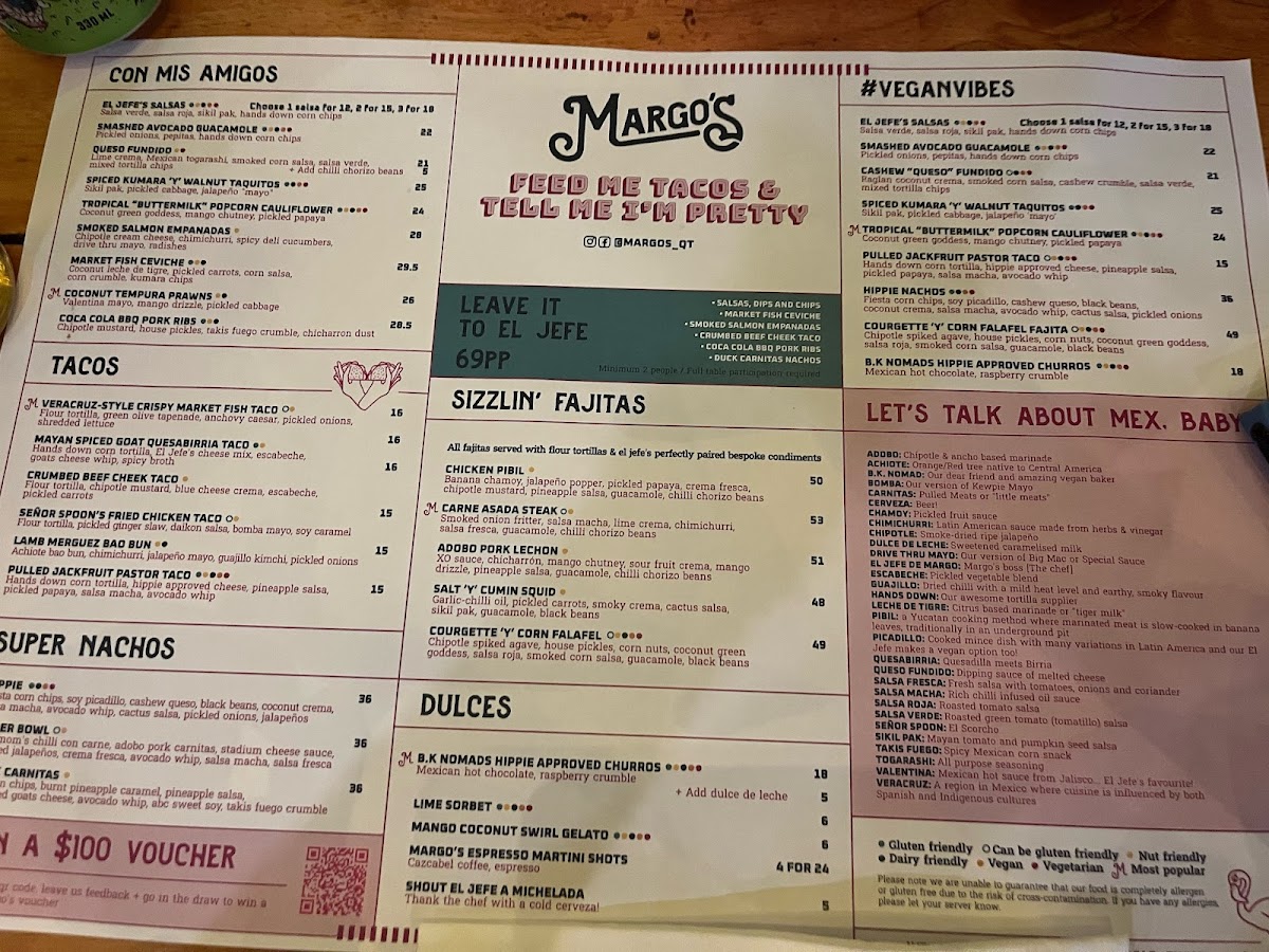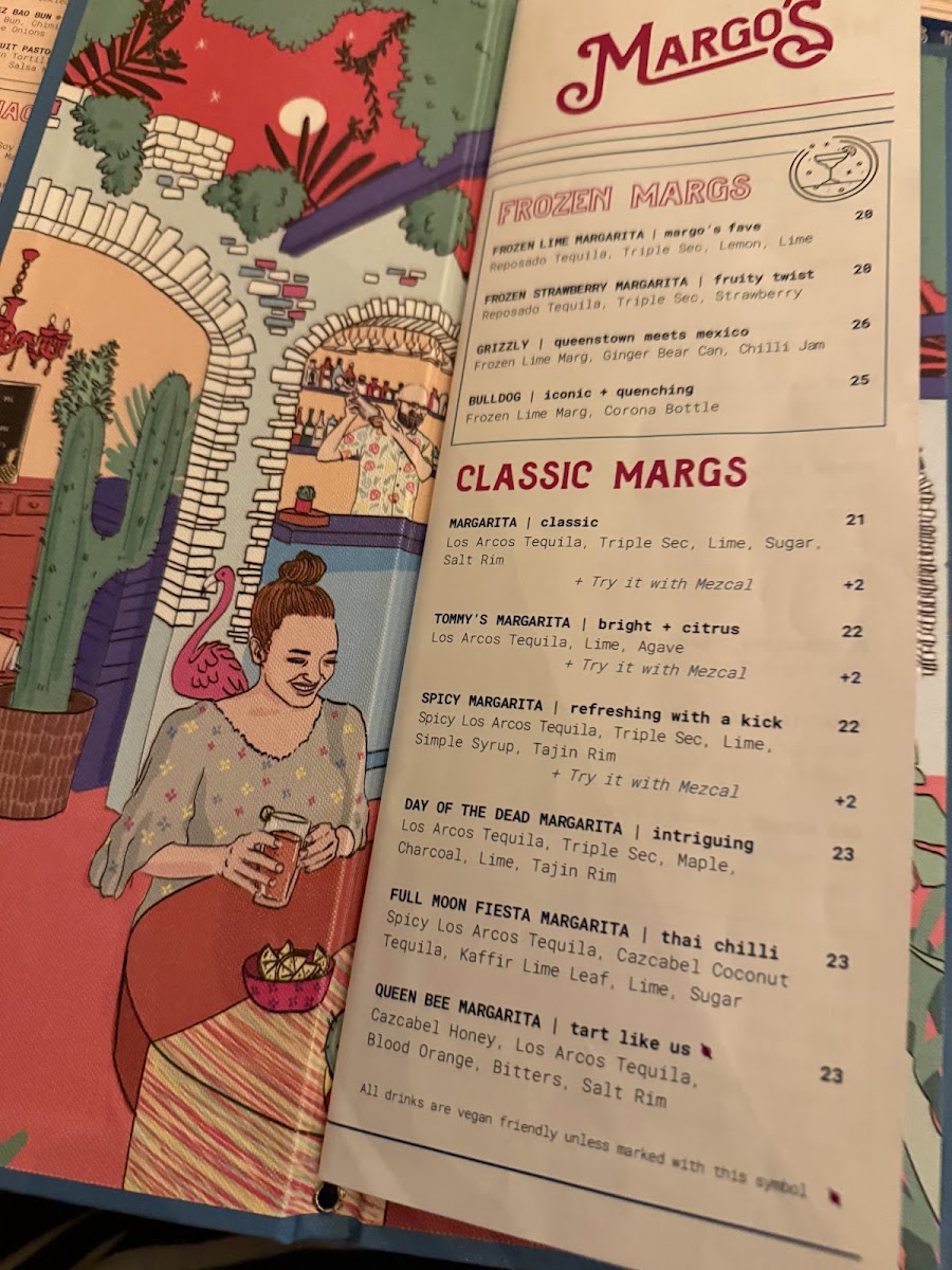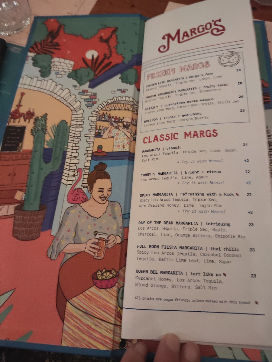 Welcome to Margo's Queenstown, a vibrant Mexican restaurant nestled in the heart of Queenstown, New Zealand. At 26 Ballarat Street, the menu offers a delightful fusion of flavors, making it a must-visit for food enthusiasts. Signature dishes like El Jefe's Salsas and Coca Cola BBQ Pork Ribs invigorate the palate, while options such as the Adobo Pork Carnitas Taco reflect authenticity and passion. For plant-based diners, a variety of vegan selections await, ensuring everyone finds something to savor.
